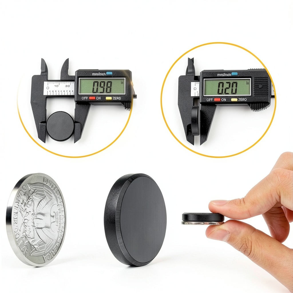 The magnets have a diameter of 25mm and a thickness of 5mm, with beveled edges for added safety.